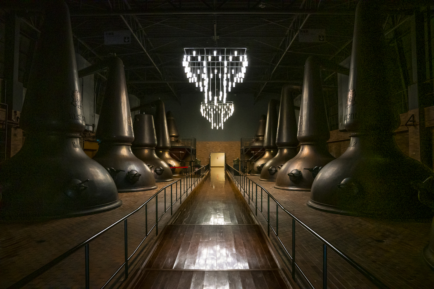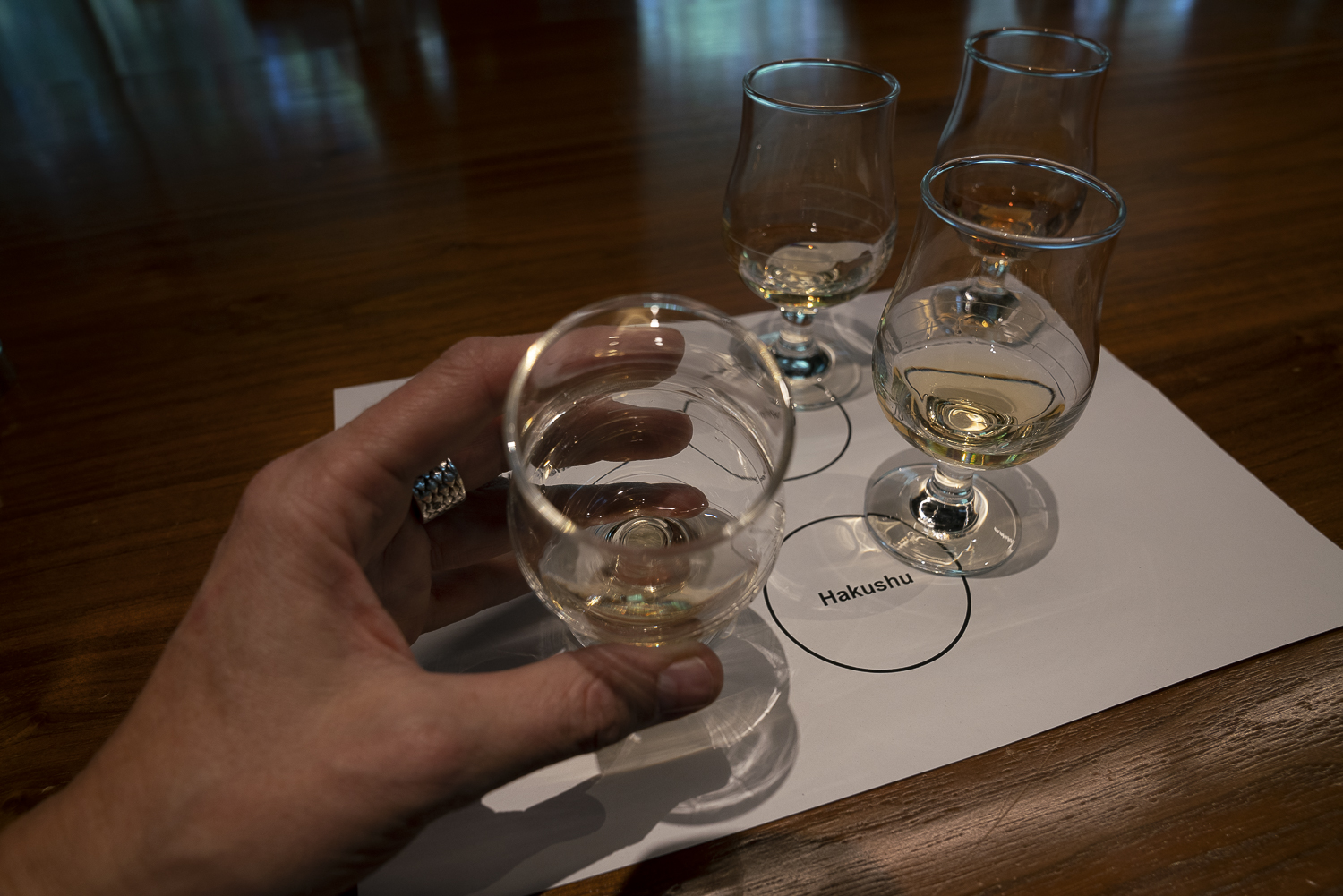 We met our guide, toured the facilities, and learned about the history of Whiskey in Japan. Unique craftsmanship is applied to all stages of production at Hakushu. We got to stick our noses into jars of ingredients, walked by impressive fermentation vats and into the hall of stills. Unlike most distilleries, Hakushu stills come in a huge variety of shapes and sizes that produce a wide range of distinctive whiskeys. Having heard about the ‘cathedral of decommissioned stills’ (not usually a part of the tour), our gracious hosts obliged and opened the doors for us. Inside, we were greeted by soaring walls and a striking chandelier illuminating the dark interior, with a lineup of beautiful old copper stills along both sides of the hall. As a final highlight and wrap of our tour, we tasted the component whiskeys used to blend the final Hakushu Single Malt.