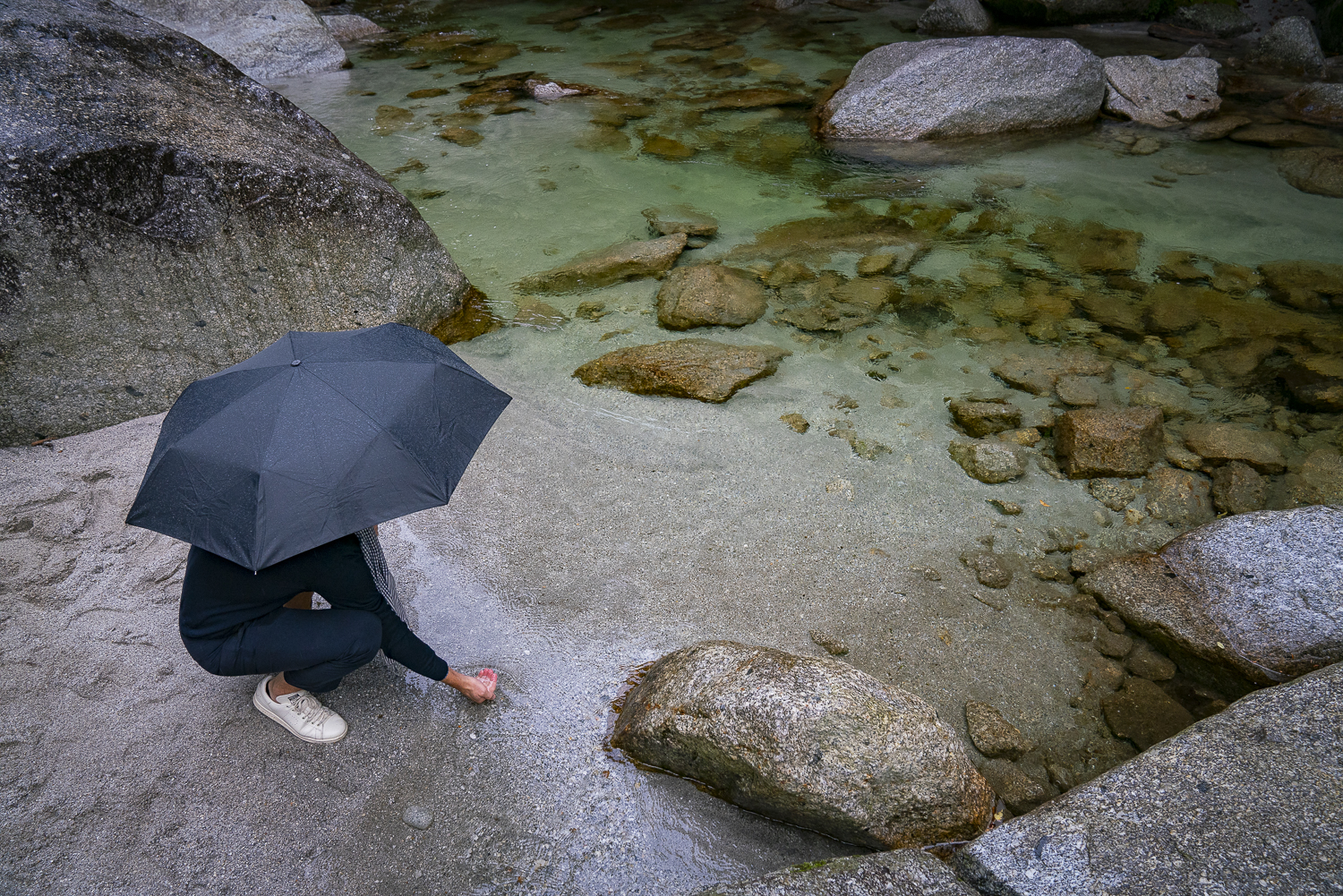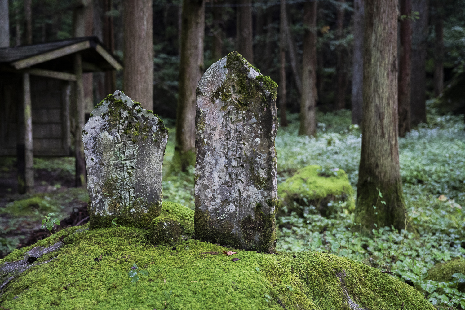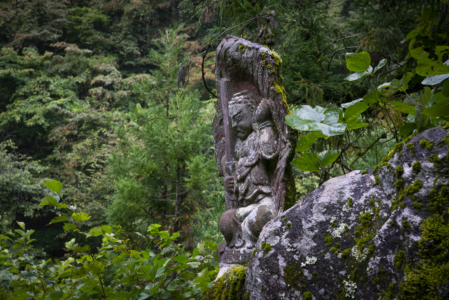 Roughly three hours by car from Tokyo, on our way to Hakushu Distillery, we took a short break at Kaikomagatake shrine, on the banks of the Ojiragawa river. The day was starting to wane, it was raining softly, and fog hung heavy in the tall trees above us, making our walk to the shrine and down to the river feel otherwordly. The shrine is dedicated to mountain worship. It is surrounded by a cemetery with moss covered markers and figures. Very few people moved about in the drizzle, so we had solemn and beautiful Kaikomagatake almost entirely to ourselves.