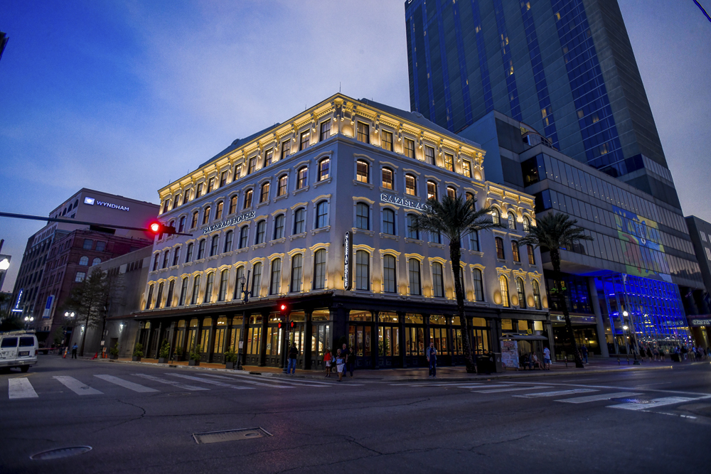 The Sazerac House is located on the edge of the historic French Quarter at 101 Magazine St. on the corner of Canal and Magazine.